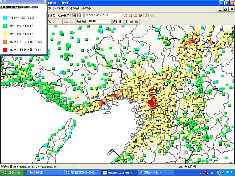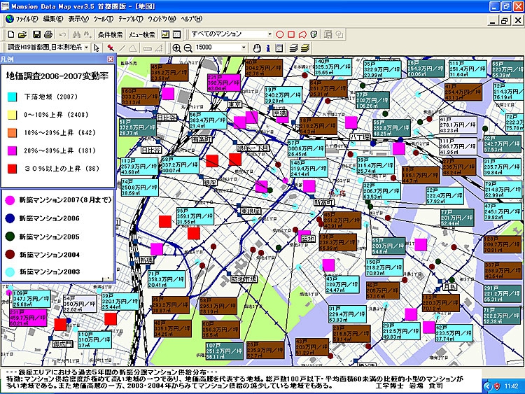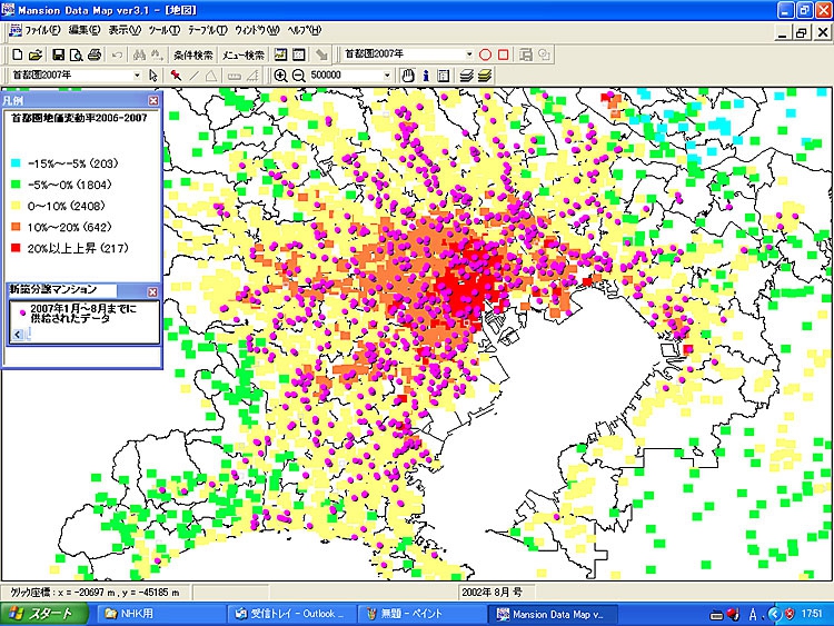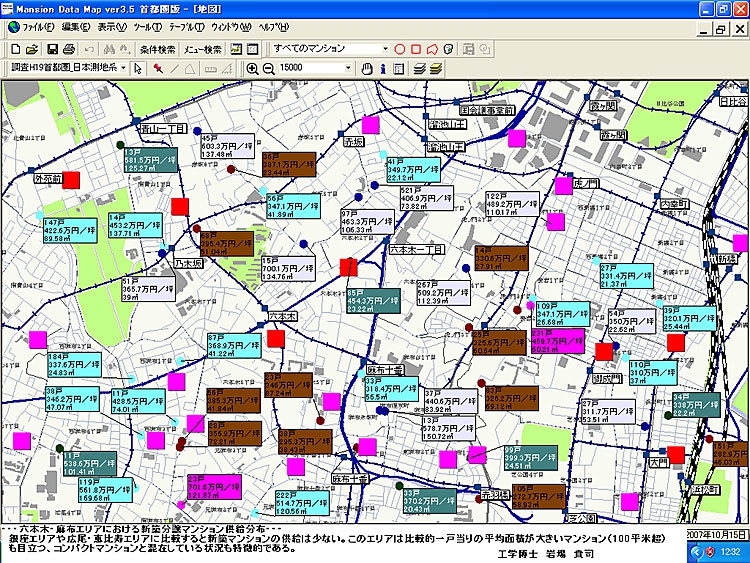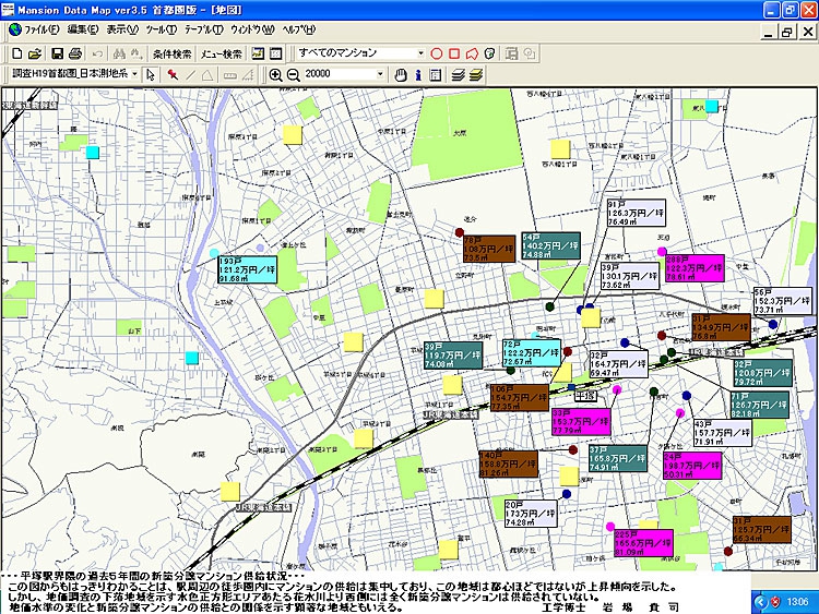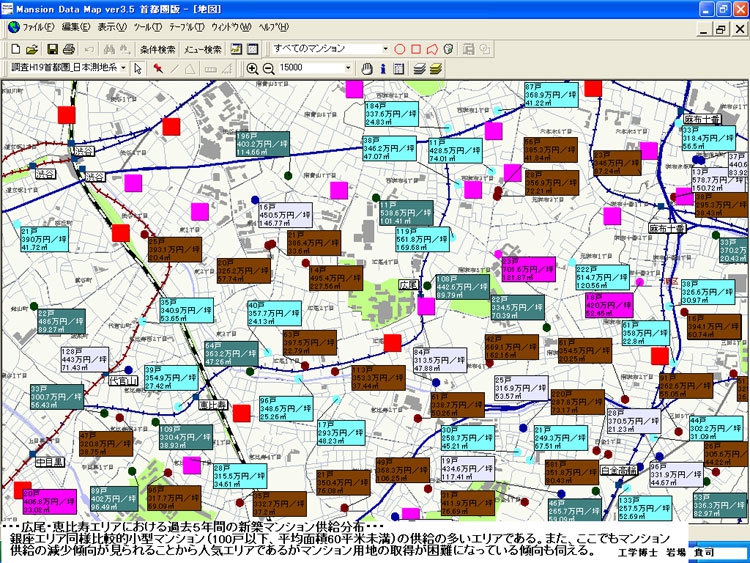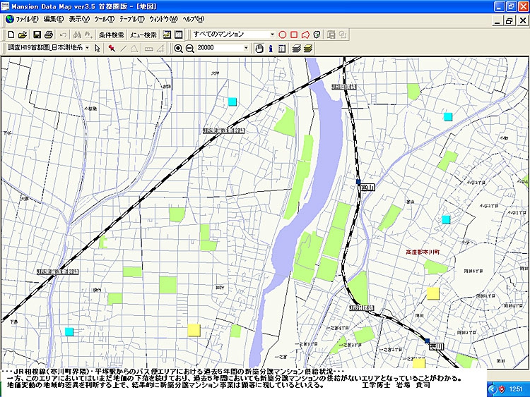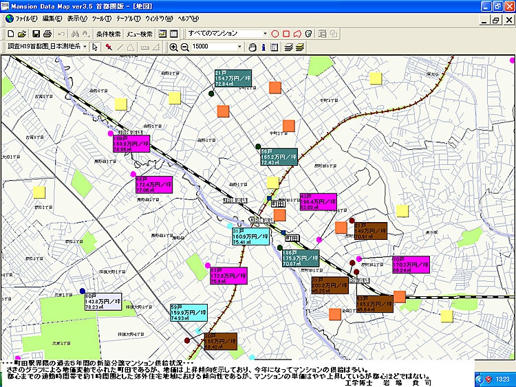 また自社地図によるGISマーケティングも用い、丁目・街区情報単位に色分け等で可視化、様々な分析を行っております。特に競争が一層激化する仲でマンション計画に関する市場調査など、これまで培ってきた専門的見地から細かく、的確にリサーチします。